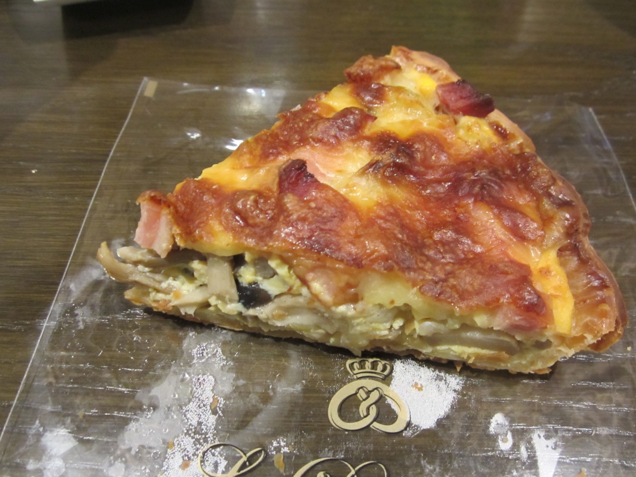 翌日に焼きたてクロワッサンのモーニングを頂きたかったのですが、クロワッサンの焼き上がりが8時で平日のモーニングは9時からとのこと。焼きたてではないのならモーニングは諦め、ホテルでも温められるキッシュ・シャンピニオン(320円)を買いました。きのこがふんだんに使われ、味も濃くなくちょどよい朝食になりました。