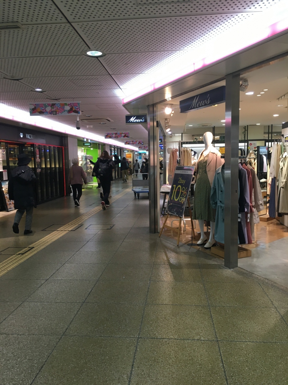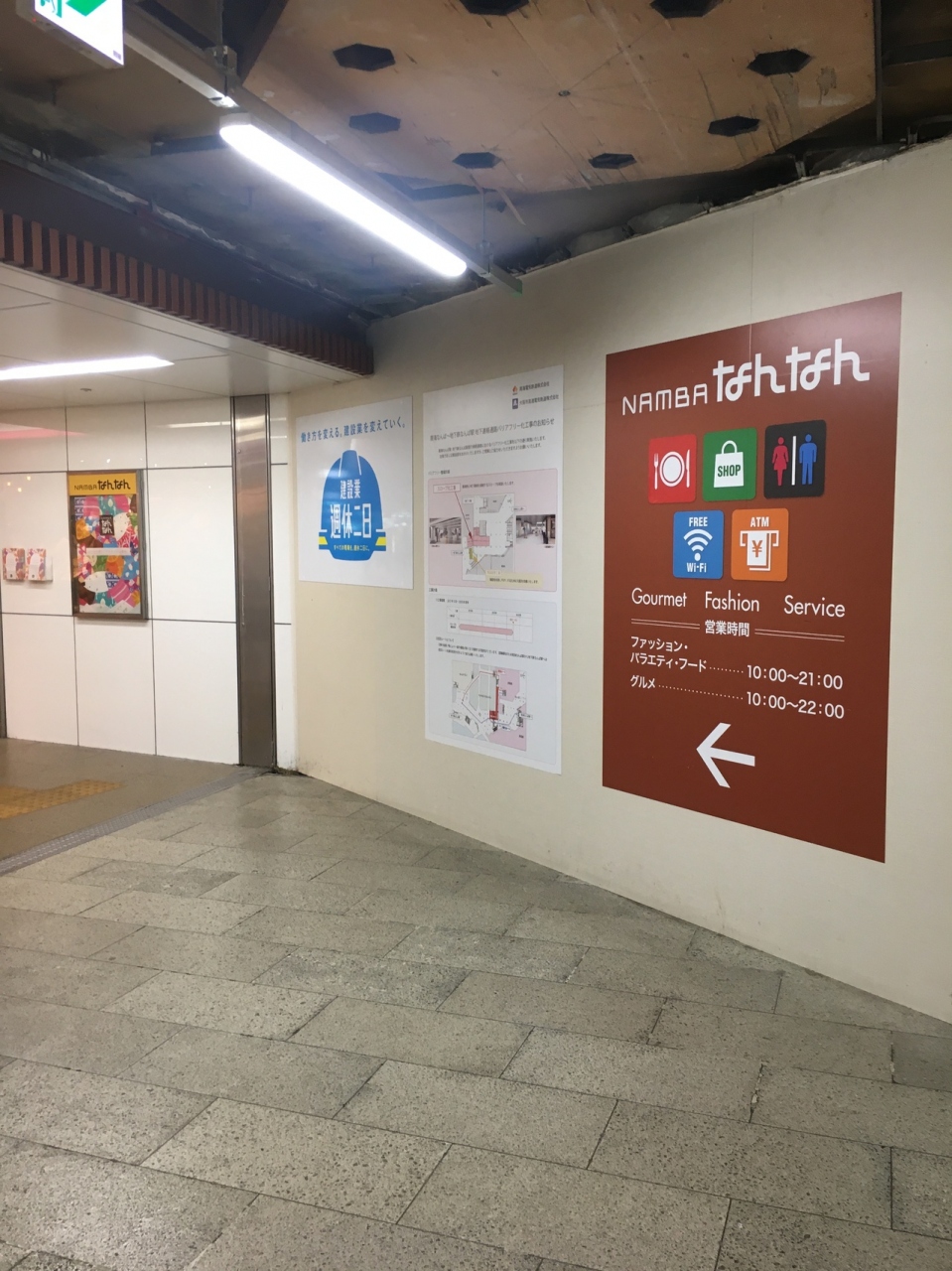 なんば駅や高島屋等と繋がっている商店街でした。地下にあるため通路は狭く人も多かったです。洋服屋等もありましたが、食べ物屋も多く、一杯飲み屋もたくさんあるので買い物客のほか、サラリーマンも多くいました。
