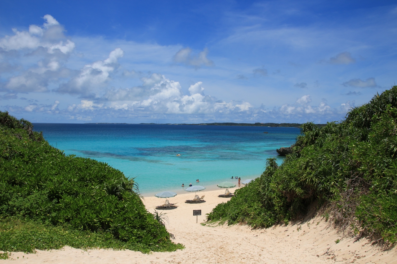 穴のあいた岩がある景色で有名な宮古島にあるビーチです。駐車場からは小高い丘をこえて向かうので、夏の暑い中で直射日光がきつく、結構大変でした。岩のある風景だけではなくて、ビーチは遊泳も可能でとてもきれいでした。