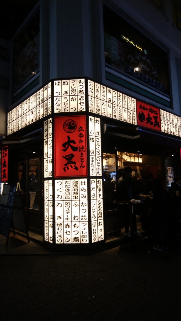 繁華街ど真ん中、角地の立ち飲み屋です。入れ代わり立ち代わりで常にお客さんがいっぱいです。初めて会った隣の人と話をしたりと中々楽しいお店です。串もの、ドリンクもオリジナリティが有って良いです。ちょい飲みに特化したお店ですね。