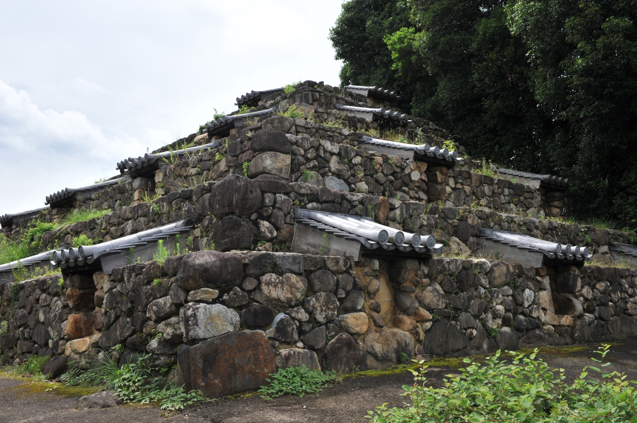 貼り石を施した方墳から覆い土が流出した跡のように見えるが、四方にある浮彫の石仏などの装飾を見ると墓ではないと思える。とにかく不思議な建物だ。寺院にある塔のような建物だろうか。とはいえ、本堂にあたるものが周囲にない。見学テラスが設けられている側は石が露出しているが、うしろ半分は覆い土が残り、山のままだ。横から見上げると、〝山頂〟に置かれた五輪塔が姿を見せる。現地には側面の菩薩像、如来像を従えて頂上に廬舎那仏が祭られていることから、奈良の大仏同様、建造された時代の廬舎那仏の信仰上の位置がうかがえるなどの説明文がある。頭塔のなぞをわかりやすく、そしてなぜ生じたのか、広域に分布しなかったのか、どんな意味を持つかなどの説明文がほしい。大胆な想像を交えても、頭塔の場合、全く構わないと思う。それだけミステリーな遺物だ。