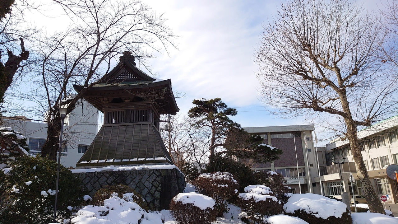 盛岡城→花巻城で使用されていた鐘が、現在は花巻市役所にあります。周辺はちょっとした庭園のようになっていました。6時までいたわけではないので真偽は不明ですが、現在でも午後6時に職員によって撞かれているそうです。時を超えて花巻を見守っていると想像するとなんとなく味があるかなと思いました。