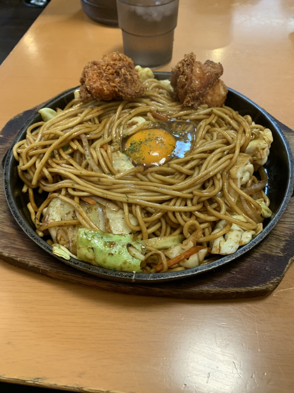 八幡駅前のロータリーの向こう側にあるちゃんぽんのお店。今回は焼きそばと海苔巻きを注文。焼きそばは通常の焼きそばに玉子、唐揚げが付いていてボリュームがある。チャンポンはボリューム満点で野菜が大量に入っているのでとてもヘルシーです。