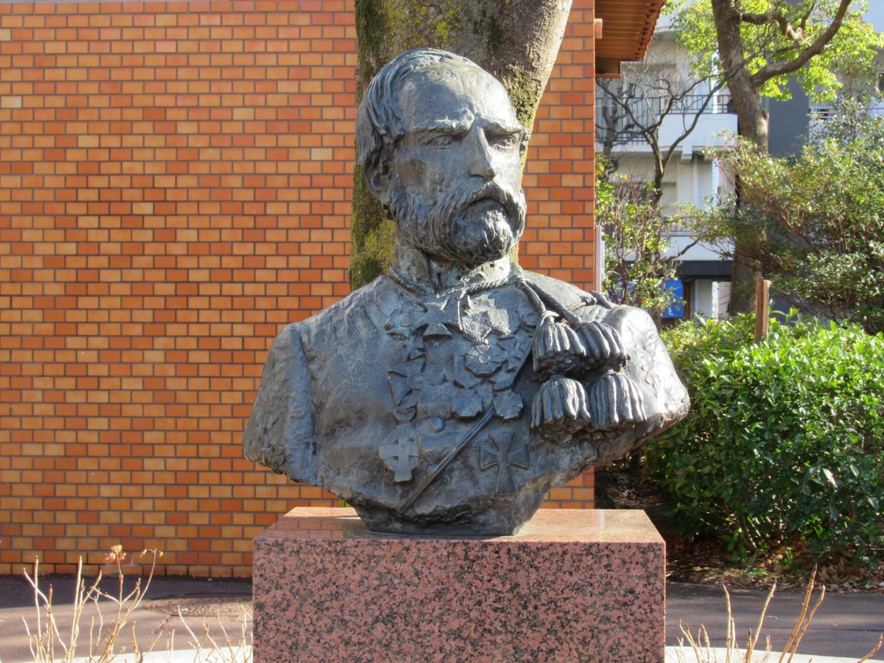 あまり大きくない胸像だが、勲章などを沢山付けた姿は、貫禄充分に見えます。