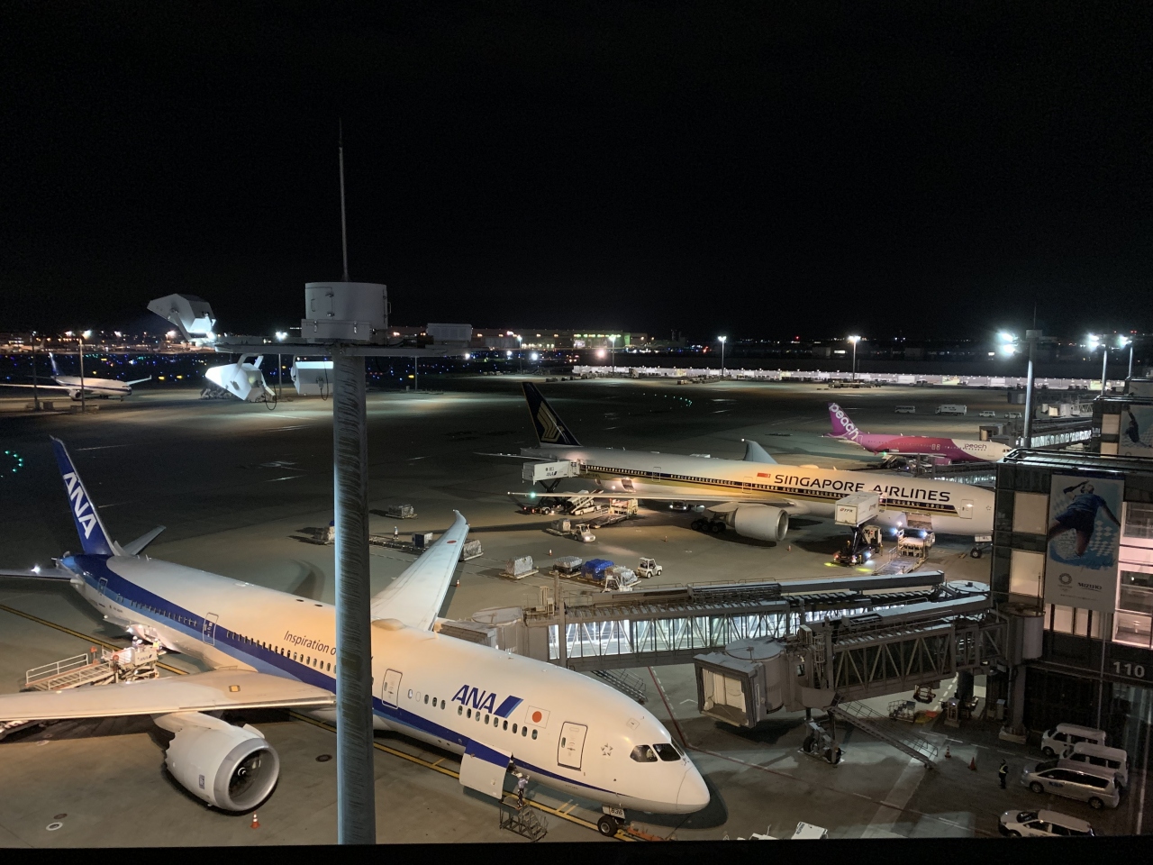 深夜に初めて展望デッキにでてみました。LCC利用の場合はリフレッシュにも最適な場所、そして何より他に人がいないのでデッキを独占して駐機している航空機の撮影ができます。