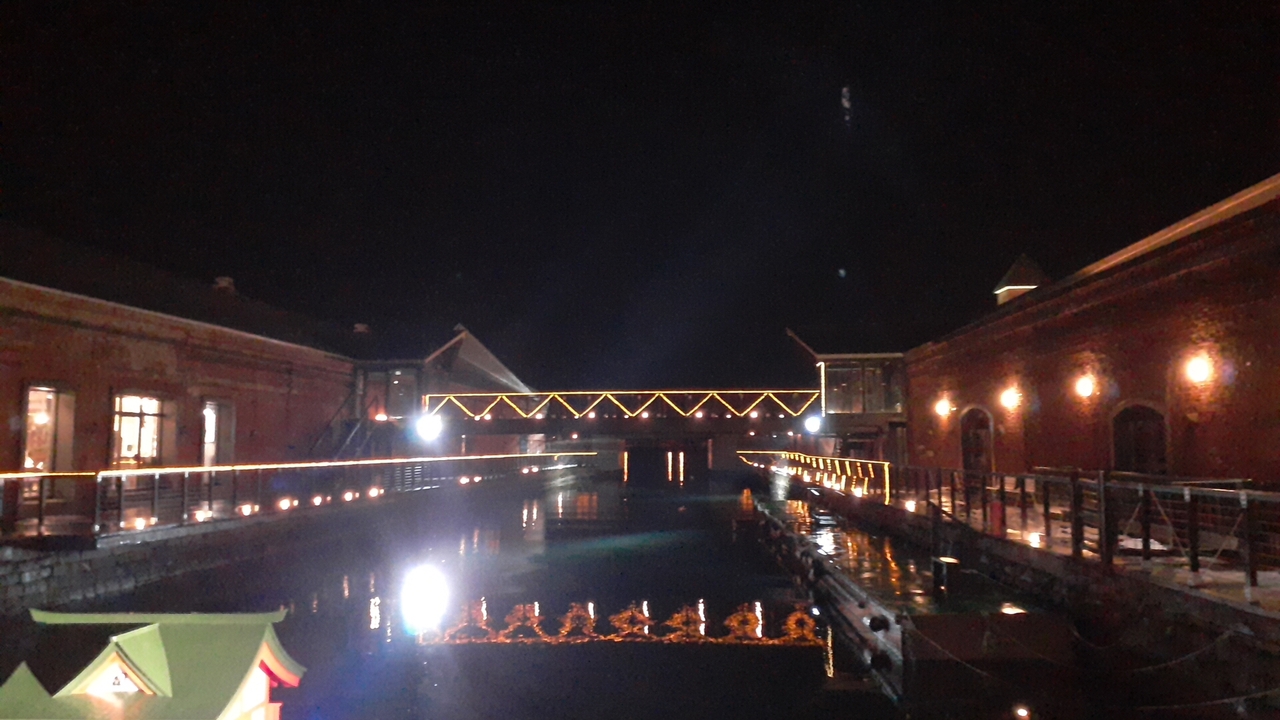 2020年2月22日現在、夜は赤レンガとイルミネーションのコラボを楽しめます