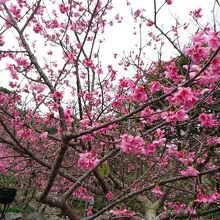2月中旬までの開催で、本州に咲くソメイヨシノとかと違って濃いピンクのカンザクラの桜祭り。