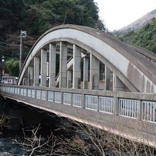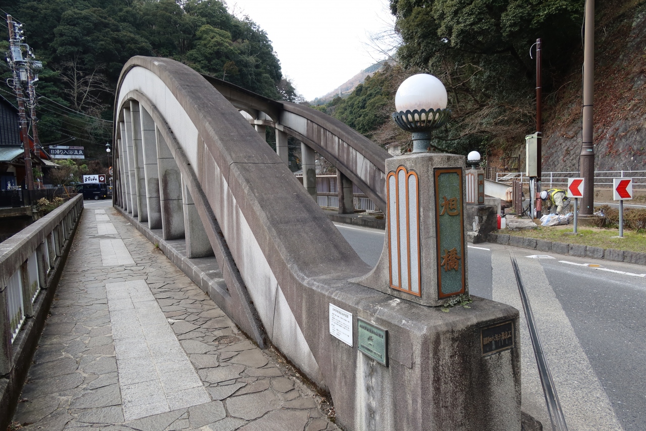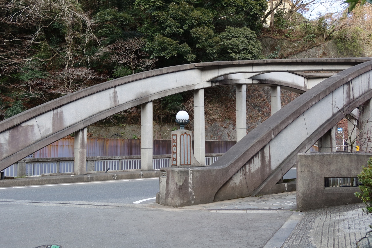 箱根湯本駅から国道138号線を芦ノ湖方面に行くと200m程行った所に早川に架かるアーチの付いたコンクリート造りの橋があります。この橋が旭橋です。