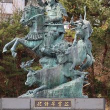 小田原駅の西口ロータリーの中に建つ銅像が北条早雲像です。牛の上を騎馬の上に跨り采配を持ち、駆ける早雲の姿の銅像です。しかし、牛の上に乗っかる姿はなんかちょっと変な感じ。牛は無くても良いんじゃないかな?と思う像。伊達政宗の青葉城の像の様に凛々しく構えた銅像で良かったのではと。