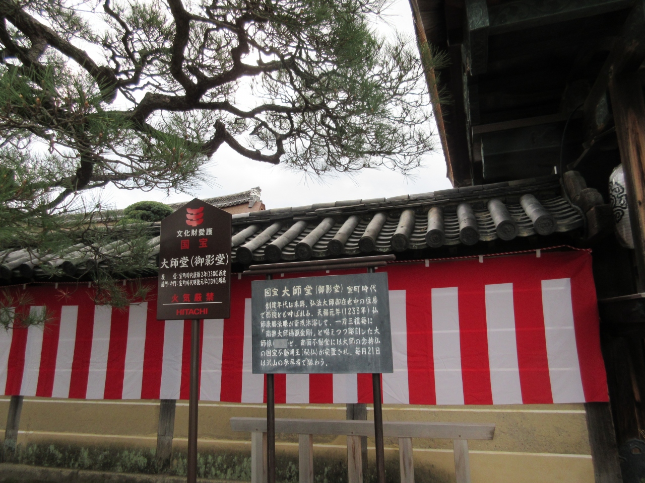 東寺の西院のところにあります。修復工事中とのことでした、シートに覆われていました。空海の念持仏の不動明王坐像が秘仏として安置されています。空海の住居だったそうです。仮御影堂が設置されています。今はそこに行くことになります。