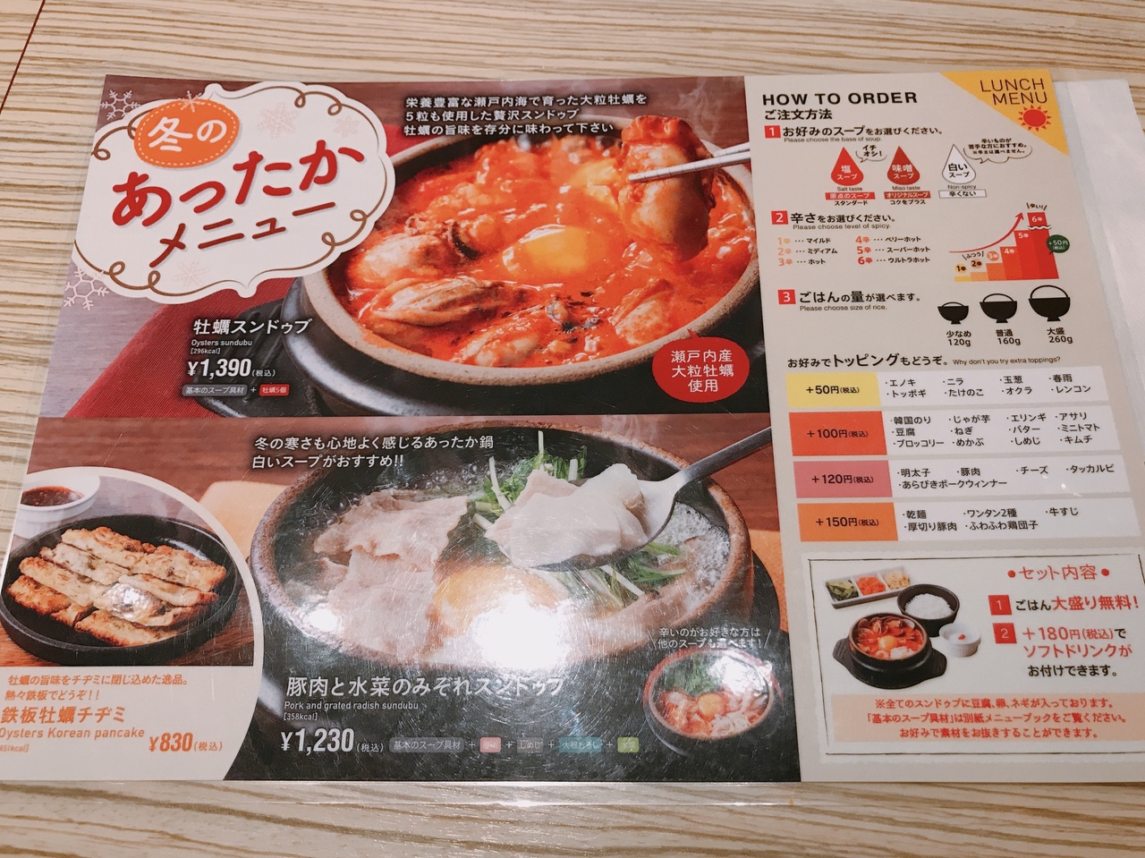 ホルモンスンドゥブはホルモンの甘みとスープの辛味が合わさってとても美味しかったです。