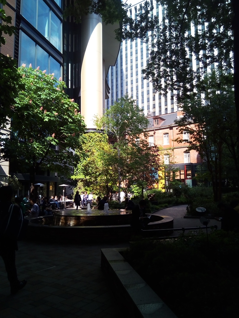 丸の内を散策中に立ち寄りました。オフィスとレストランなどの複合商業施設で、1階にちょっとした庭の様な空間がとっても雰囲気の良い場所でした。緑がたくさんあり、周りにはカフェもありました。腰かけてちょっと休憩したり雑談するにも良い場所です。