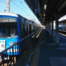 小田原駅と南足柄市役所の最寄大雄山駅を結ぶ9.6キロの路線。フラワーガーデンの梅林鑑賞のために利用。