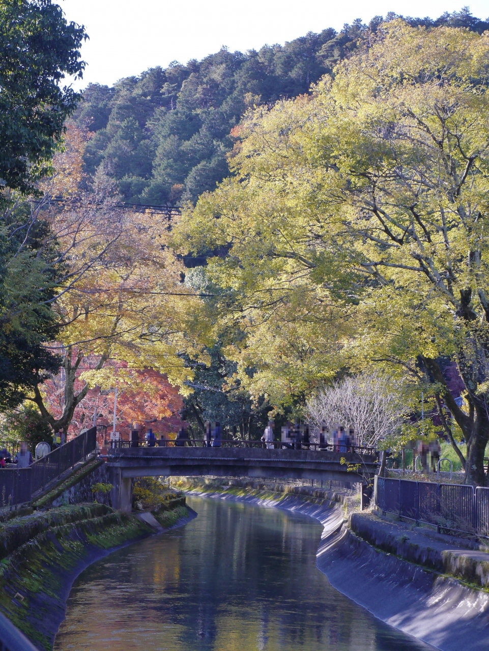 毘沙門堂に登って行く道の途中で流れていました。両岸は散歩道になっていて、流れも緩やかで音も無く、観光客の多かった毘沙門堂とは対照的にとても落ち着いた雰囲気でした。ちょうど紅葉の時期でもあり、気持ちいい散歩ができました。