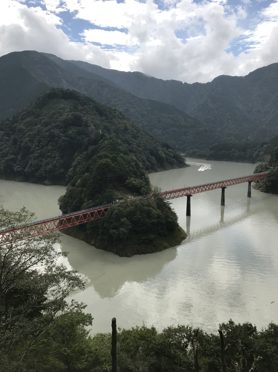 長島ダムで堰き止められたダム湖が接岨湖。