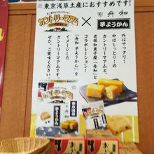 お店です。種類も沢山あり、浅草のおもたせには良いですね。一息つきたいときも2階でようかん等も頂けますのでお勧めです。