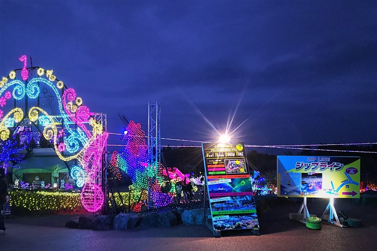 日中は遊園地やアスレチックなども楽しめるスポットですが、お薦めは夜に開催されている「伊豆高原グランイルミ」です。今年で5周年という事で、毎年進化しているようです。
