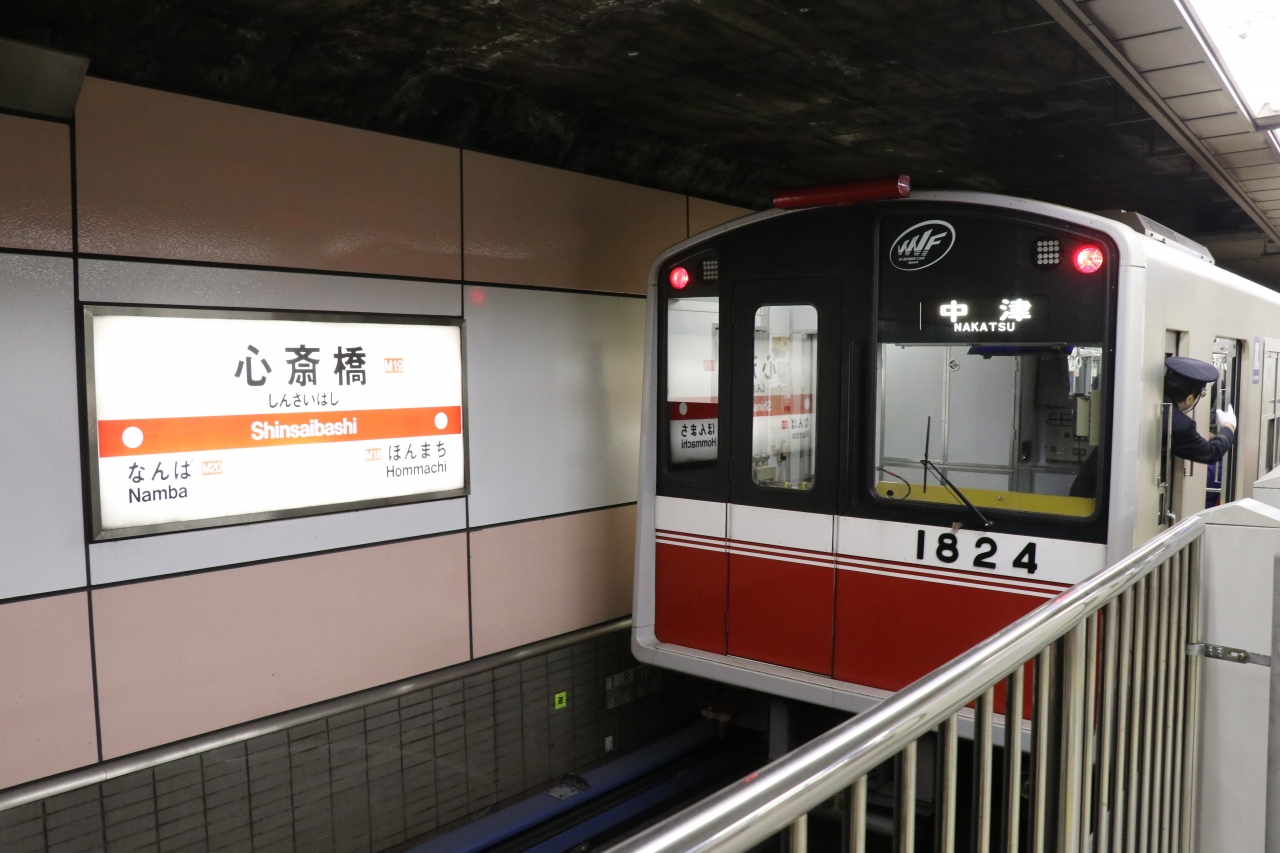 一部の駅に限られますがホームドアの設置・稼働が行われており安心して利用できるのはありがたいことです。梅田をはじめ難波や新大阪などの繁華街を通っていくことも関係しているのか7、平日の昼間でも車内はそこそこの混雑。千里中央方面の一部列車は途中の市の尾坂駅止まりもあるので、行先表示には注意が必要です。車両の顔がちょっと変わった感じでした(笑)