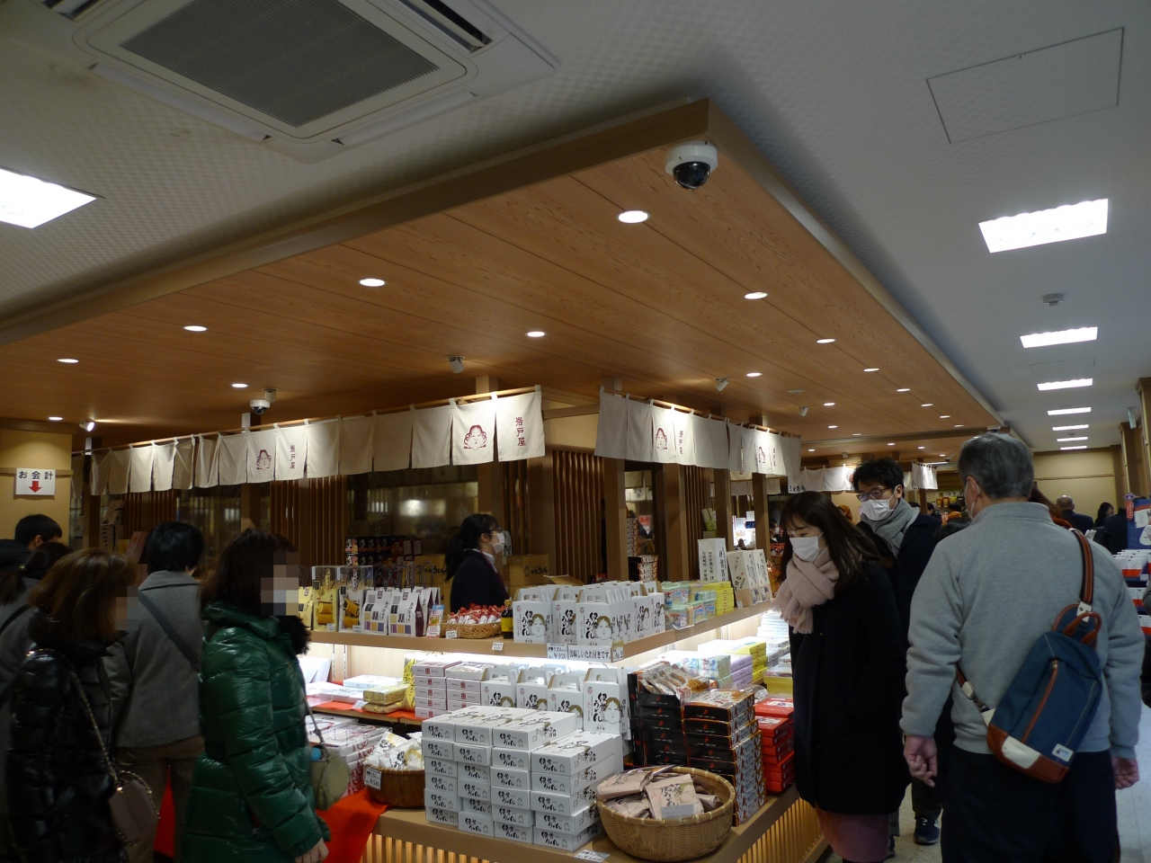 岩戸屋は広い店内にこれでもかと美味しそうなお菓子が並んでいる。奥の方の五十鈴川サイドにはレストランもやっているようだ。