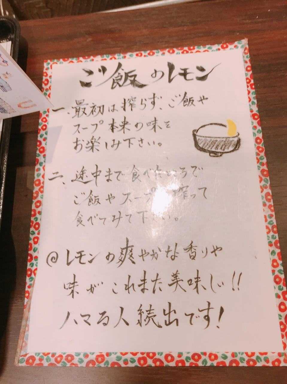 とり肉は香ばしく軟らかくてスープと絡めて美味しくいただきました。