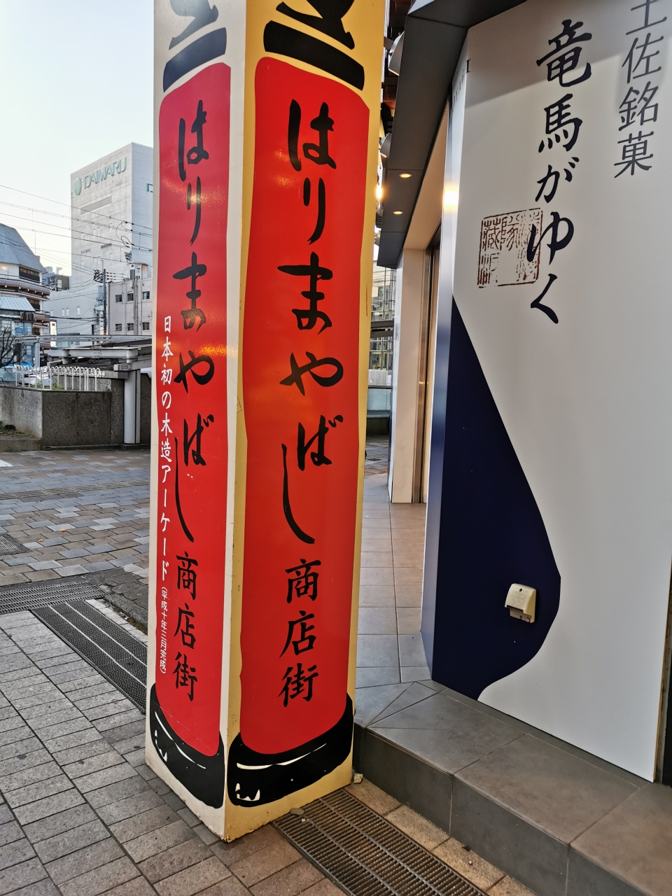 高知観光で食事がてらうろうろとしました。はりまや橋を見て「はりまや橋」商店街を観光です。ただ平日の夜で、コロナの影響もあったのでしょうか。まったく人がいません。閑散として寂しい感じでした。お土産屋さんも観光客も少ないて残念、ただ穴の開いたおちょこ、下がとがって飲みきりしないとおけないおちょこなど、高知を感じるお土産は健在です。是非機会があれば訪れましょう。
