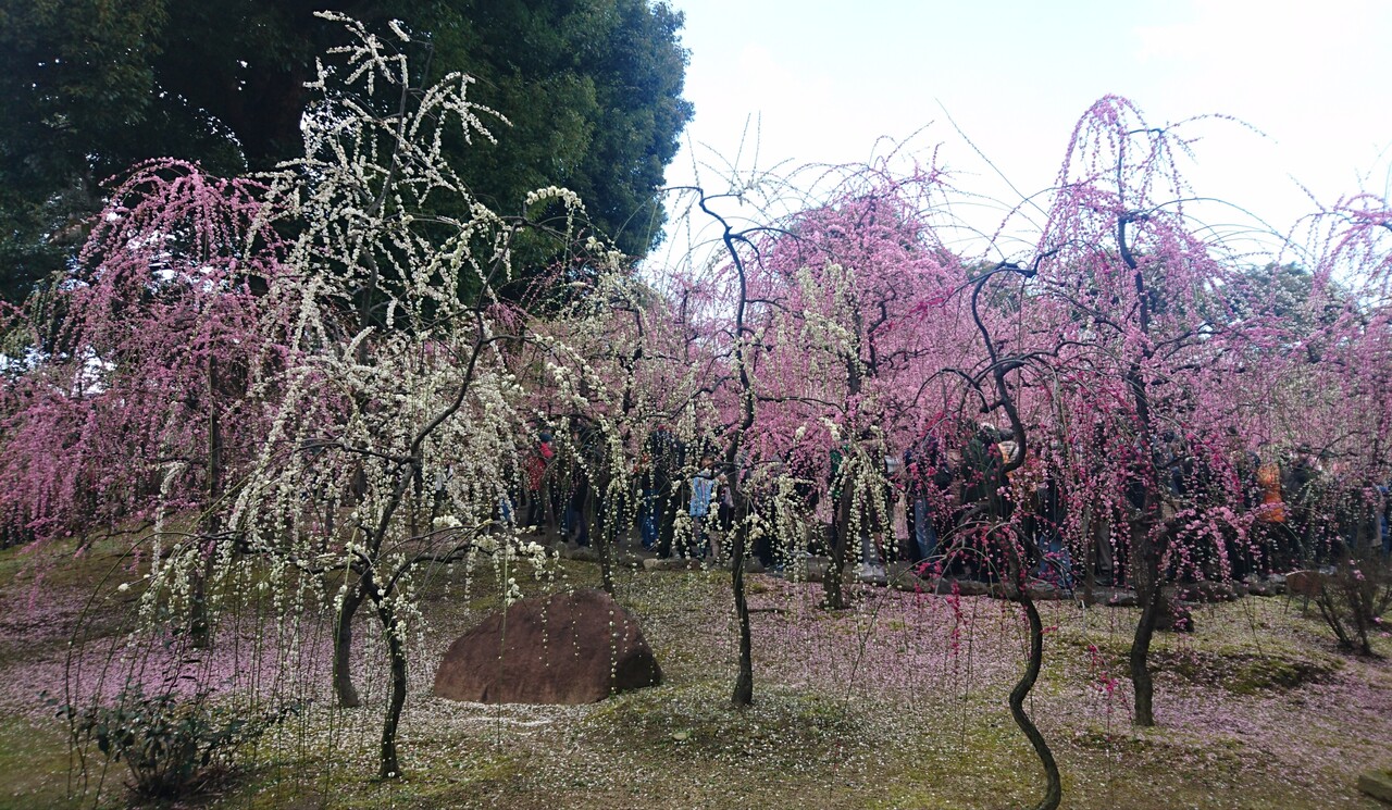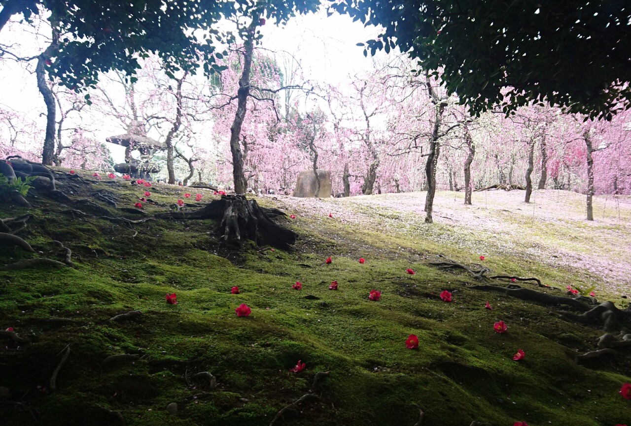 祝日の12時半頃に訪れた。京都南ICから混んでいた。駐車場はいくつかに分かれていて誘導がうまくいっていないので停められるかは運次第。拝観券を買うまでに10分以上並んだ。入ってすぐに満開のしだれ梅が咲いていて大混雑。入場制限をかけた方がよいかと。しだれ梅のエリアを抜けると椿と苔。散った椿が均一に落ちていて若干並べた感が…。滞在時間は30分くらいだった。