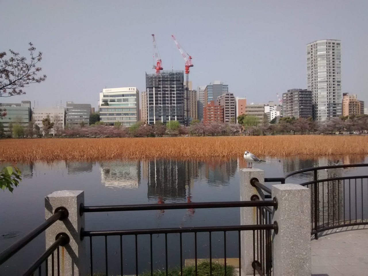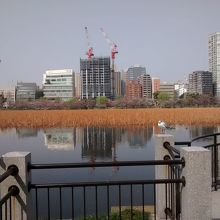 不忍池弁天堂は、不忍池の中心近くの島みたいな場所にあって分かりやすいです。不忍池・かもめ・高層マンションと調和した、緑色のきれいな屋根が最高にきれいでした。いつも外国人観光客でごった返しているので要注意。