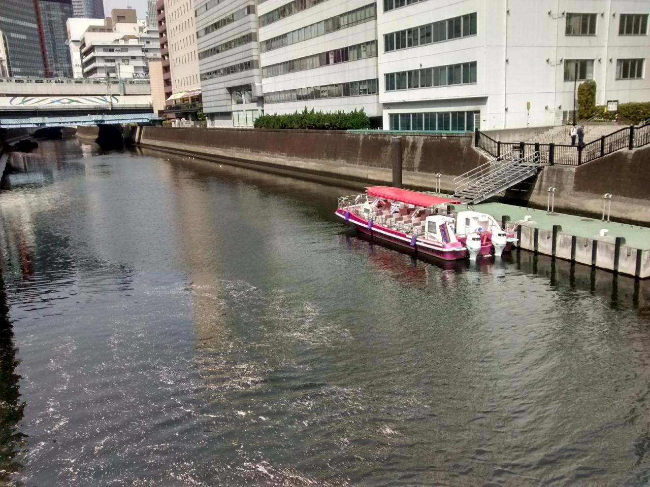 サクラの花の散る時期にちょっと変わった見物は、川に流れる大量のピンク色の桜の花びらです。秋葉原近くの神田川で丁度そういう風景を見られて最高でした。上流から流れてきたもので、これが下流に流れて東京湾に注ぐのです。