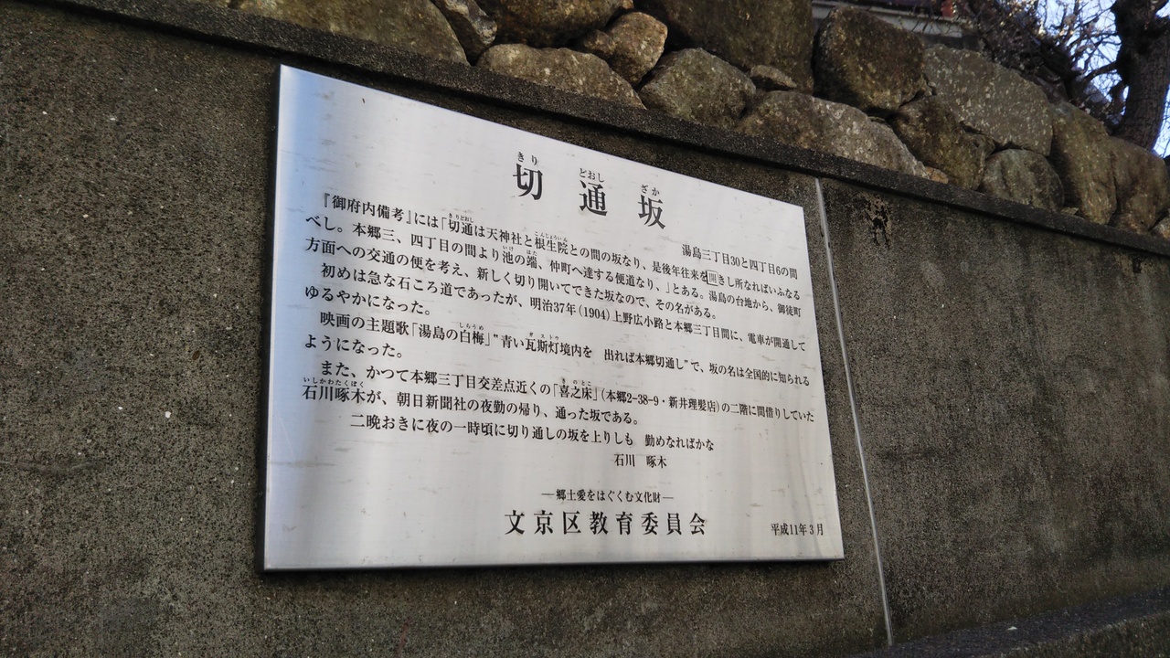 春日通りが上野から後楽園方向へと上って行くところがこの坂です。南側は湯島天神です。その辺りに石垣も残っています。数年前まで、その湯島天神を囲むように派手なネオンのホテルが何軒も在ったのですが、今はほぼ(表通り沿いからは)一掃されています。