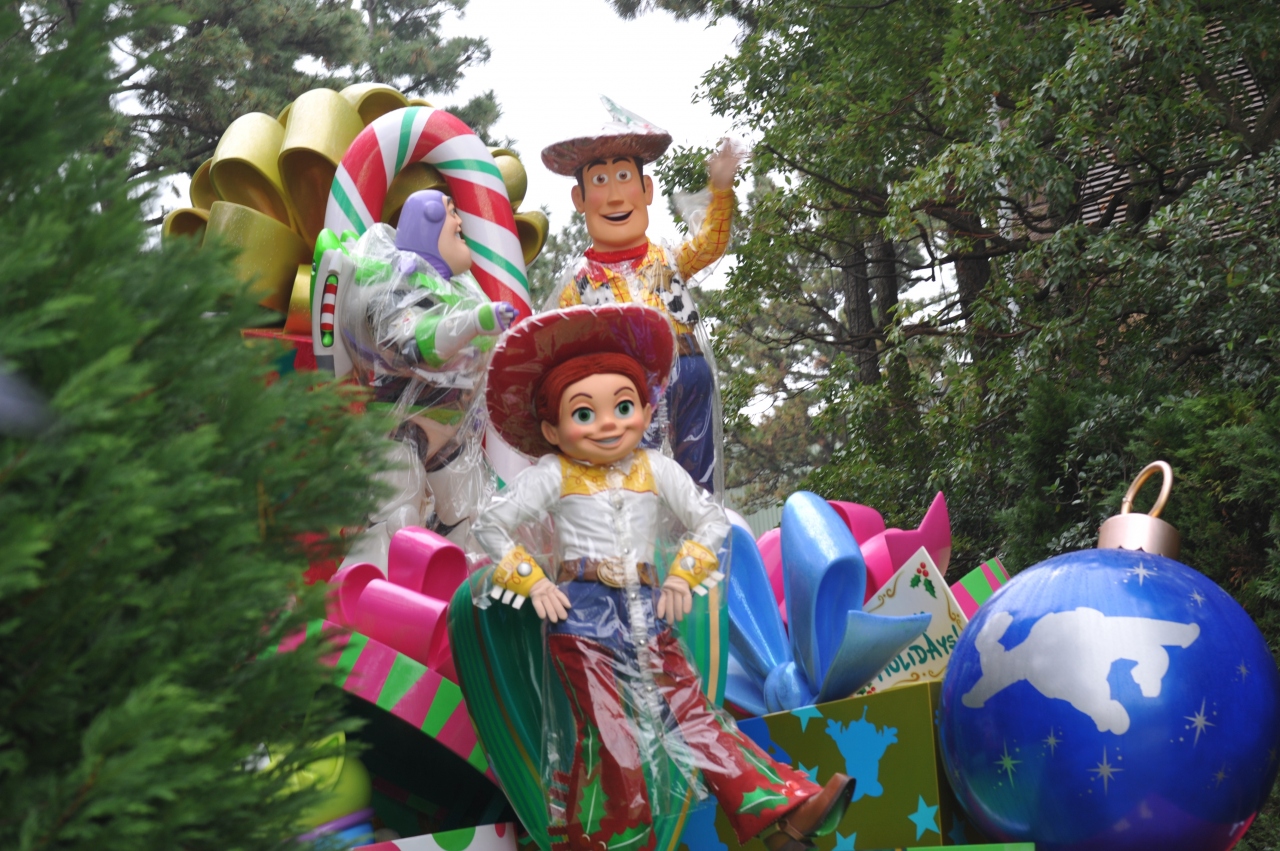 お昼のクリスマスパレードは、ちょうどホーンテッドマンションから出てきたところぐらいで始まったので、ベストスポットで見ることが出来ました。好きなキャラクターが普段とは違う、冬らしい装いをしていたので、とても楽しかったです。