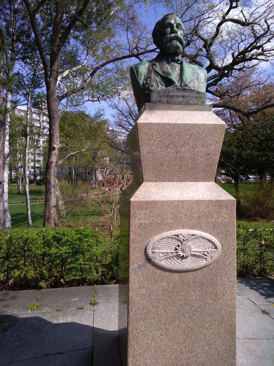北海道大学の札幌キャンパスに行くなら、北大に貢献されたクラーク先生の像は、絶対見逃せない観光アトラクションです。周囲は緑が豊かな場所で、胸像もそんなに巨大でないので、注意していないと見逃してしまうと思います。