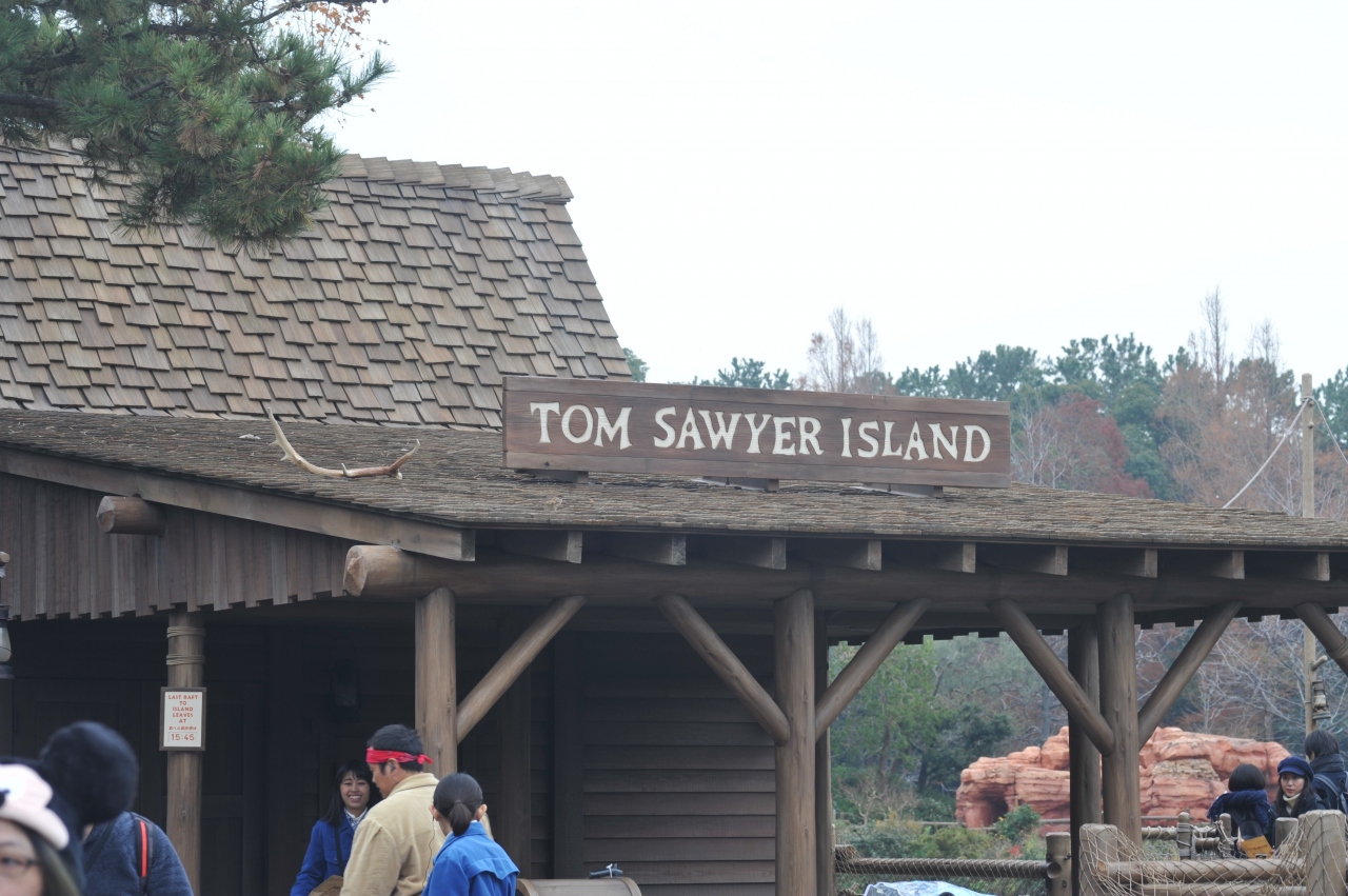 トム・ソーヤ島への渡し舟です。いかだ、は普段、乗ることが無いので、珍しい体験が出来ます。トム・ソーヤ島は、子どもが対象なので、このいかだは、そんなに並ぶことは無いです。どこも並ぶお昼時に行ってますよ。