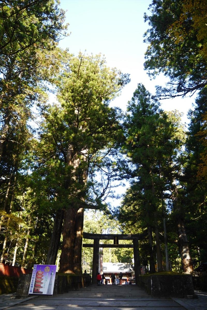 日光東照宮の一の鳥居で、もちろん、二荒山神社のものとはまた別のものです。この鳥居から見てけっこう手前に東照宮とでかでか名前の入った石碑もあるのでそことこの鳥居とセットで写真を撮っている観光客も多かったです。まわりには杉の木が立ち並んでいました。