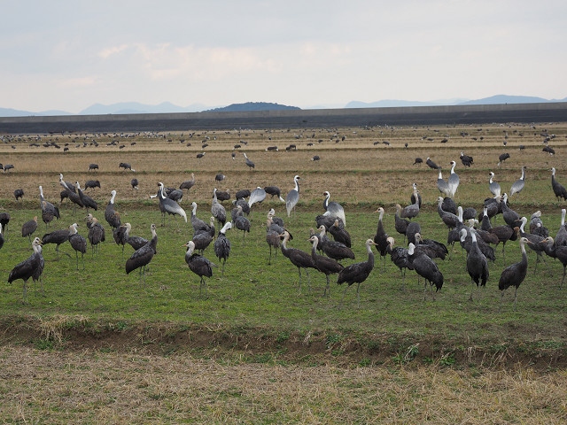 1万羽を超えるそうで、いろいろな鶴がいてみていて飽きません。朝7時から餌をまくのでそれを撮影・見るのもよいです。