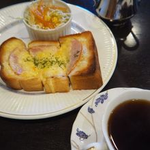チーズトーストは、厚切りの食パンにマヨネーズを塗り、ハムと玉子を乗せ、焼き上げたもの。