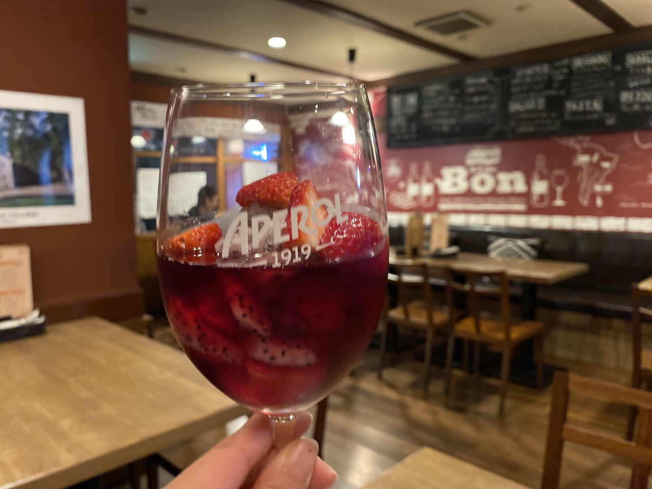 自家製サングリアはカットフルーツ入りで、すっきりして美味。