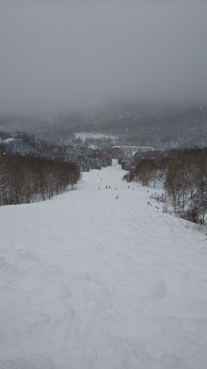 ゲレンデは東面に向いているので、岩菅山などの景色がメインですが、下から見て左肩部にあたるコースからは、一ノ瀬エリアのスキー場景、中野市や長野市のパノラマ景が見えてなかなか爽快です。