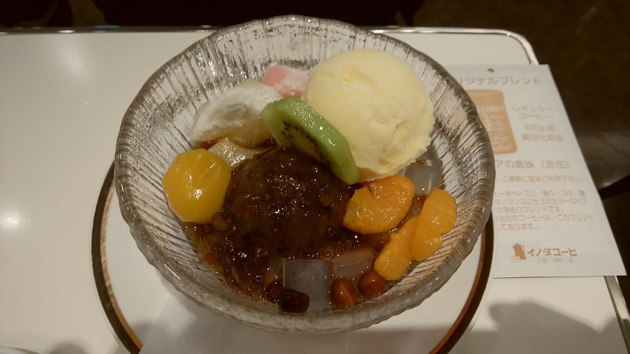 ちょっとひと息したい時に便利なのがデパートのコーヒ一店。街中ほど混んでおらずゆっくりできてメニューも豊富です。イノダコーヒと言えば、京都旅行した時に本店に入った