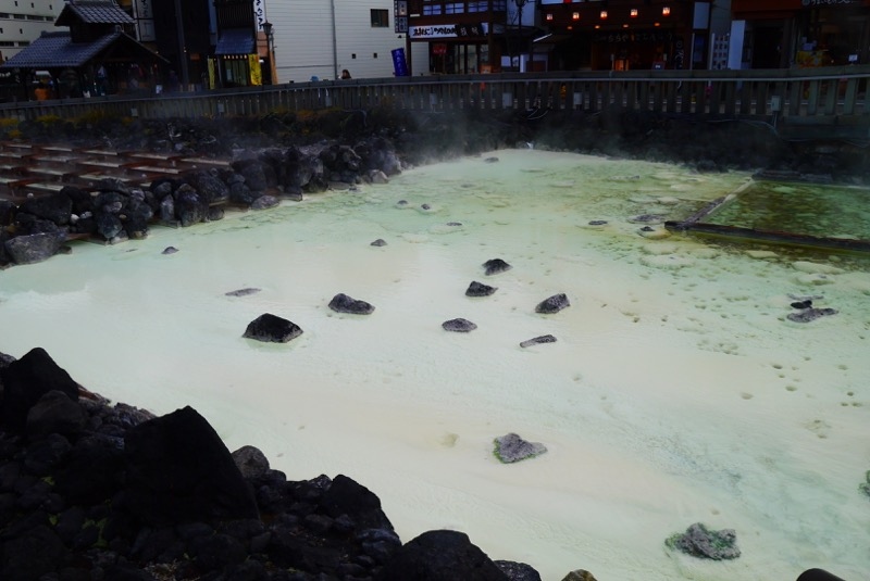 日本を代表する温泉、草津温泉。そのなかの「ここぞ草津温泉!」という景色こそこの湯畑ではないでしょうか…。たっぷりの湯の花が一面に敷き詰められているこの光景は圧巻です。意外と写真におさめづらいですが、見応えあります。