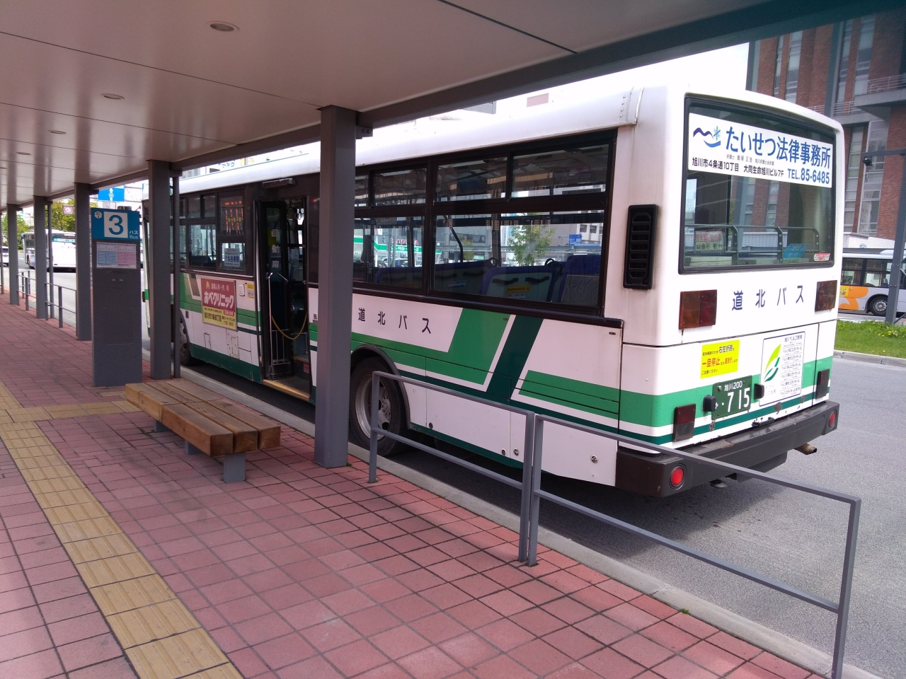北海道は鉄道網が貧弱でしかも広大なため、路線バスを利用した方が、効率的に移動できることが多くあります。道北バスの路線バスも旭川周辺の観光にとても便利で、JR旭川駅からいろいろな場所へ運行しています。緑と白の車体が目印です。