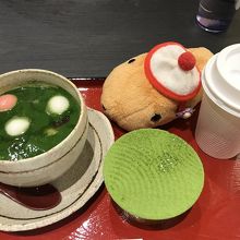 抹茶ティラミスセットと抹茶ぜんざいを注文。