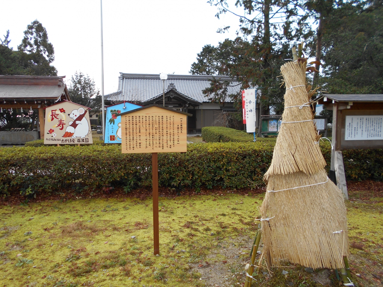 滋賀県高島市安曇川町に鎮座する近江聖人中江藤樹所縁の神社です。国道161号線道の駅藤樹の里の東側に建っています。藤樹を敬慕する人々により大正11年に建立されたそうです。年末に御参りして近所の人々が清掃と正月の準備をしていました。藤樹先生が敬われているのが身に染みて実感できました。鳥居横には藤樹記念館があります。