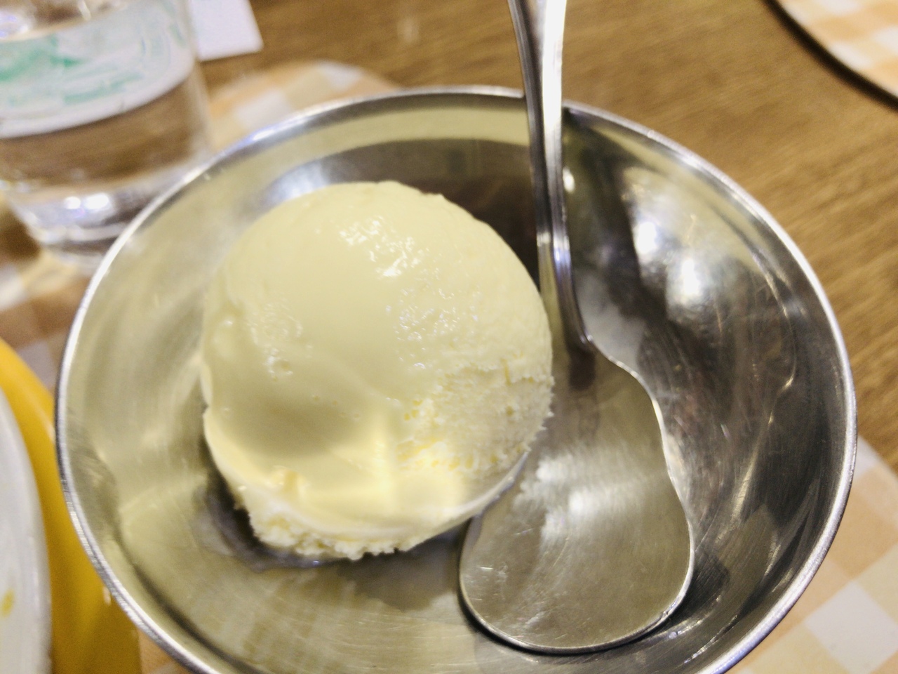 ご飯の盛りがいい分、ルーが足りなくなったら無料で後がけOK。食後のデザートにはアイスクリームがセットで付いてきます。