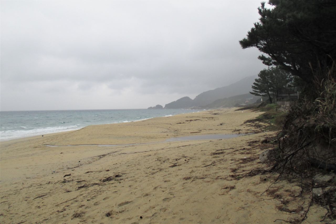 この永田浜は屋久島では1番長い砂浜だそうで全長はおよそ800mあるとのことですが、砂浜の奥行きはそれほどはありませんでした。訪れた時はカメの5~7月の産卵期ではありませんでしたから、何の変哲もない砂浜が拡がっていました。