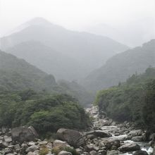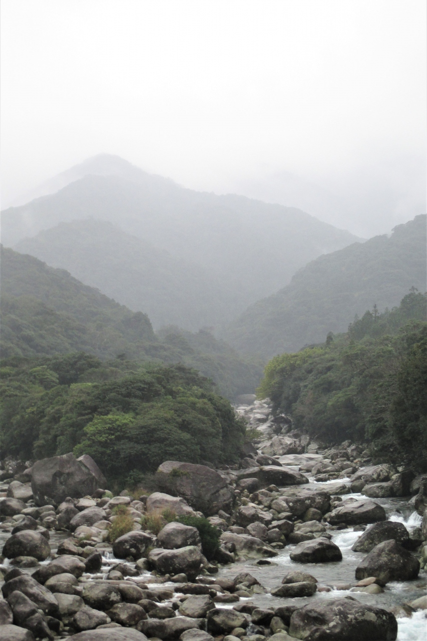 屋久島は平地が少なく、山岳部が海岸近くに迫っています。横河渓谷も永田川の河口から少し遡ったところですが、すでに急流域です。永田岳?などから押し出され、流れ落ちてきた大きな岩がゴロゴロとしていました。どれも角の取れた丸みのある岩です。長年掛けてゴロリ、ゴロリと転がるたびに角が取れたのでしょうね。