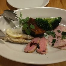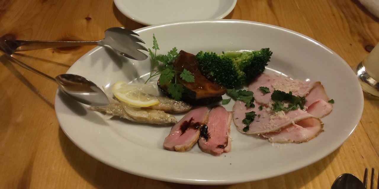 前菜の盛り合わせ5種、ラザニア、スペアリブ、デザートをオーダー。