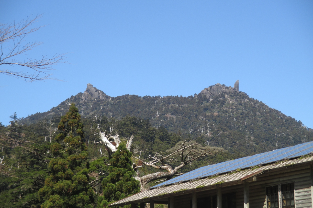 ヤクスギランド・森泉の1階には売店がありましたがガラガラに空いていました。それはさておき、見学コースを廻って、その出口から出発した入口に向かって戻ってくると、屋久杉ランド・森泉の建物の屋根の上に太忠岳の天柱岩が見えました。その特徴的な形にちょっと感動です。太忠岳の天柱岩までは何時間ものトレッキングが必要だそうですが、横着をして眺めて満足しました。