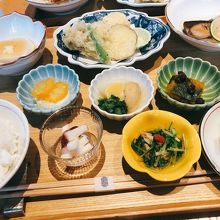 三井ガーデンホテル内にある和食レストランで、9種のおばんざい御膳を頼みました。京都らしく健康的なメニューが9種類で、1700円くらいでした。店内は広くて、仕切りがあるので、静かにゆっくり過ごせて良かったです。
