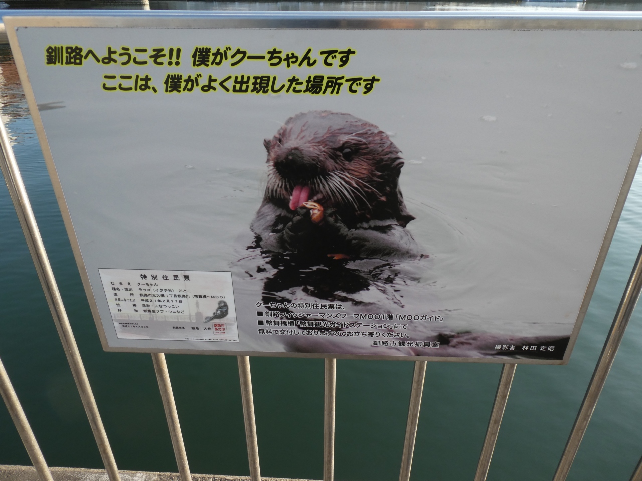 釧路フィッシャーマンズワーフMOOの所には冬に釧路川にやって来るラッコの「クーちゃん」の写真入り説明版が有りました。