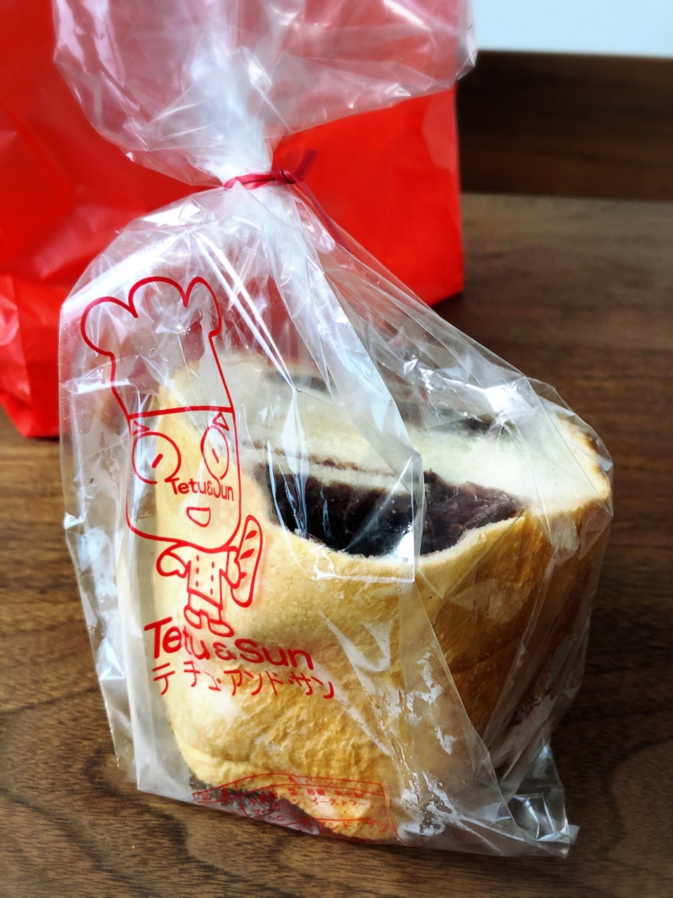 赤い看板が目印の素朴なパン屋さん
